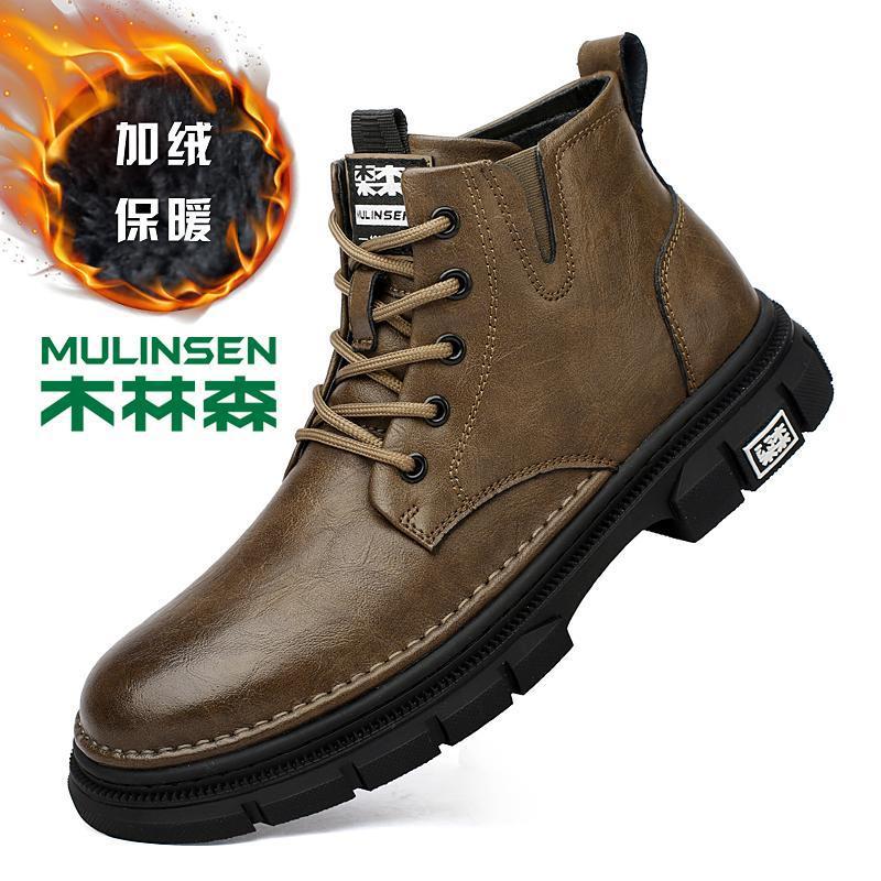 木林森男靴真皮頭層牛革高組保温男靴工装靴冬戸外雪地靴加毛男