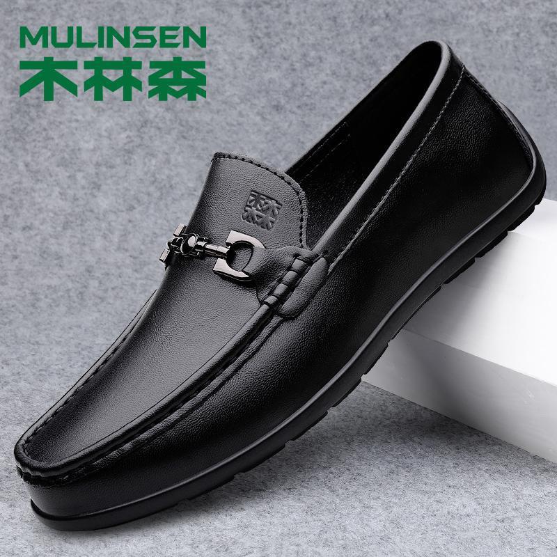 木林森男靴2024新型高級豆靴男型本革通気レジャー靴一足足漕ぎ怠け者靴