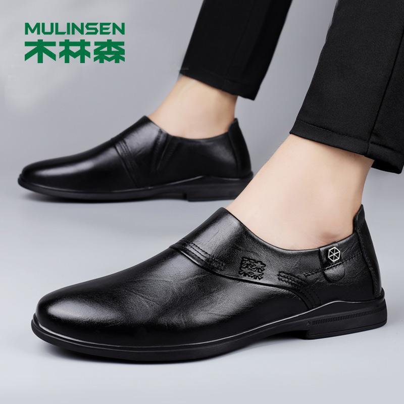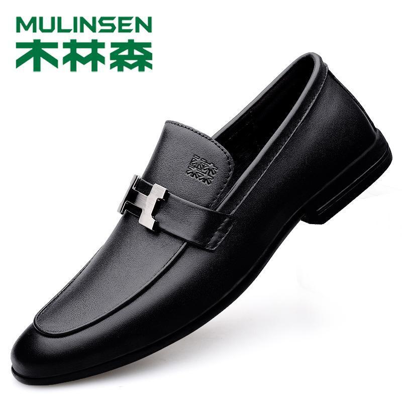 木林森男靴2023秋の新型ビジネスカジュアル真皮一足でオフィスを漕ぐ耐磨耗靴男