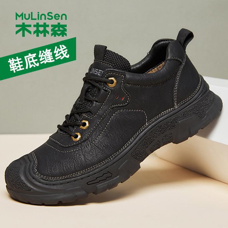 木林森秋冬の新型の頭層牛革滑り止めの軽い男性靴の柔らかい底は耐摩耗性があります。