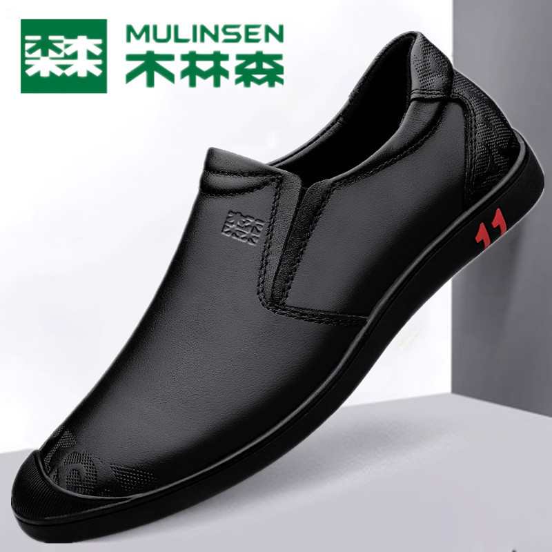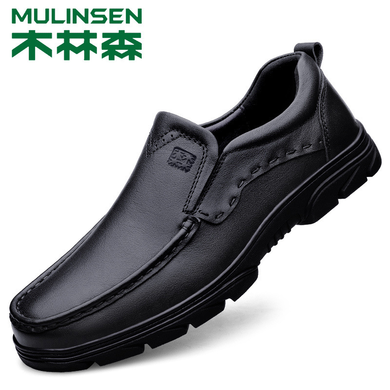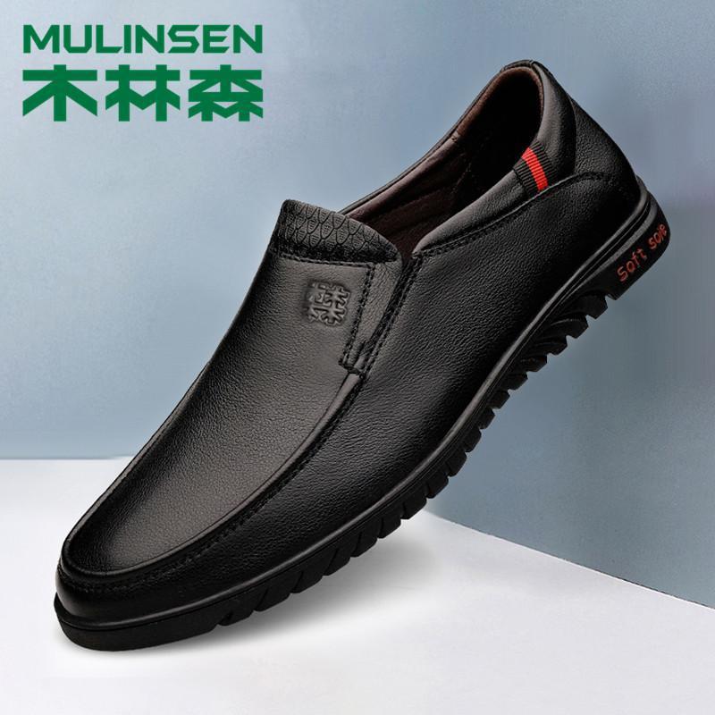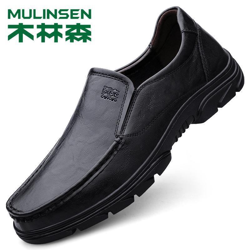 木林森男靴春秋革靴豆靴男真皮軟底中年カジュアル靴男百合通気吸汗