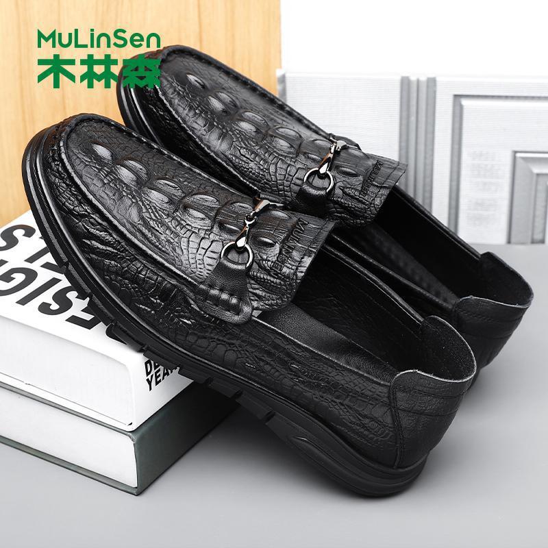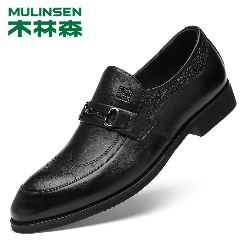 木林森男靴フロスト牛革本革ビジネスカジュアル靴ストラップソフト革底耐摩耗性オフィス靴