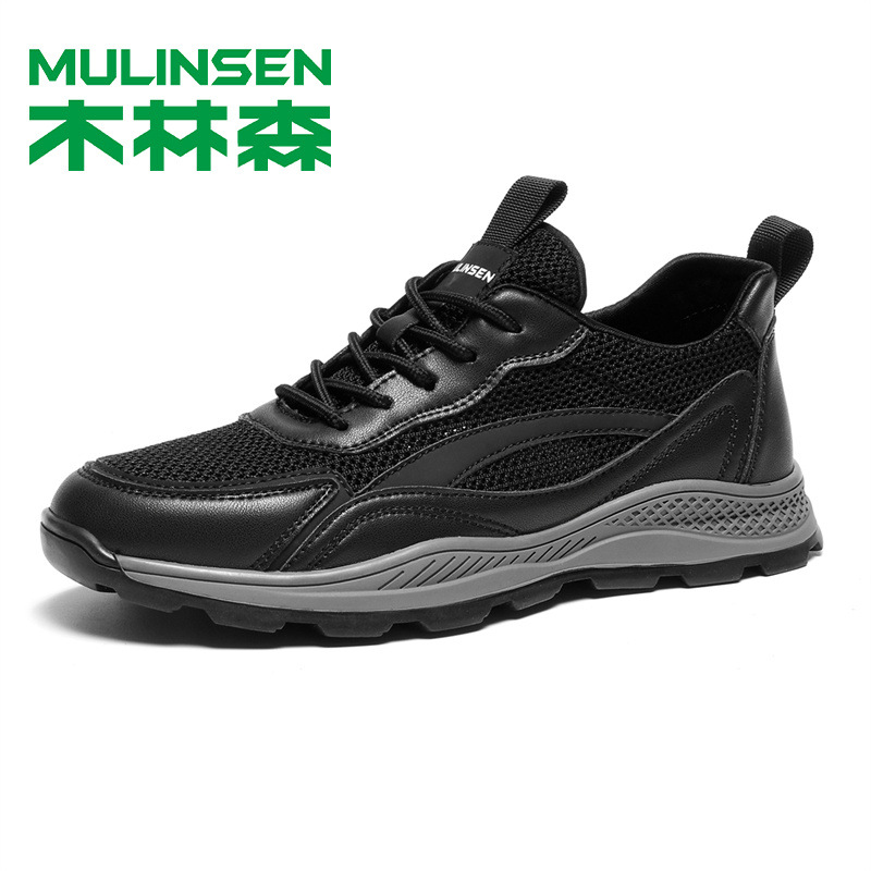 木林森男靴2023新型夏の厚い底のネットの通気性のレジャーのランニングの運動靴の黒色のお父さんの潮の靴