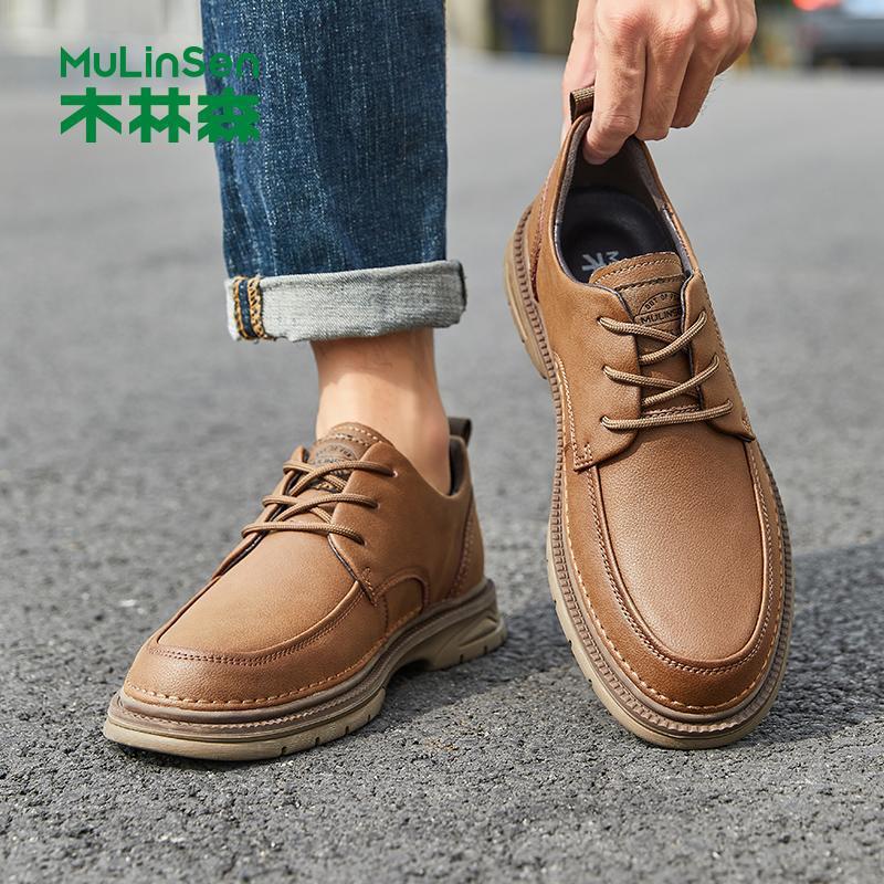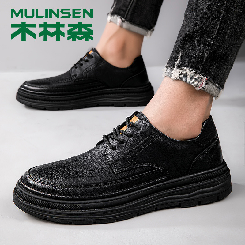木林森男靴本革ソフト底ビジネスレジャー革靴オフィス出勤英倫復古低助マーティン靴Y