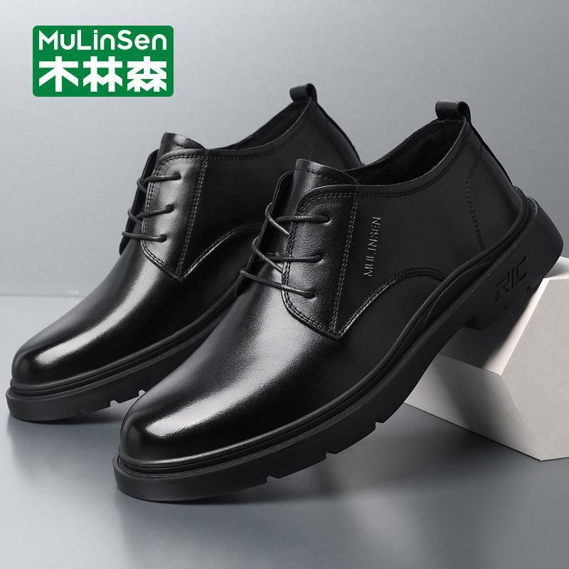 木林森革靴男性モデル秋2024新真皮ビジネス正装カジュアルシューズ英倫風結婚新郎靴