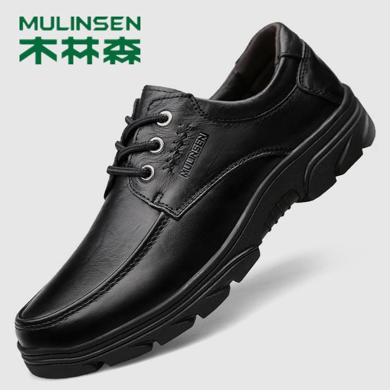 木林森男靴春本革ソフト底カジュアルビジネス男性靴男本革厚い底中年お父さん靴