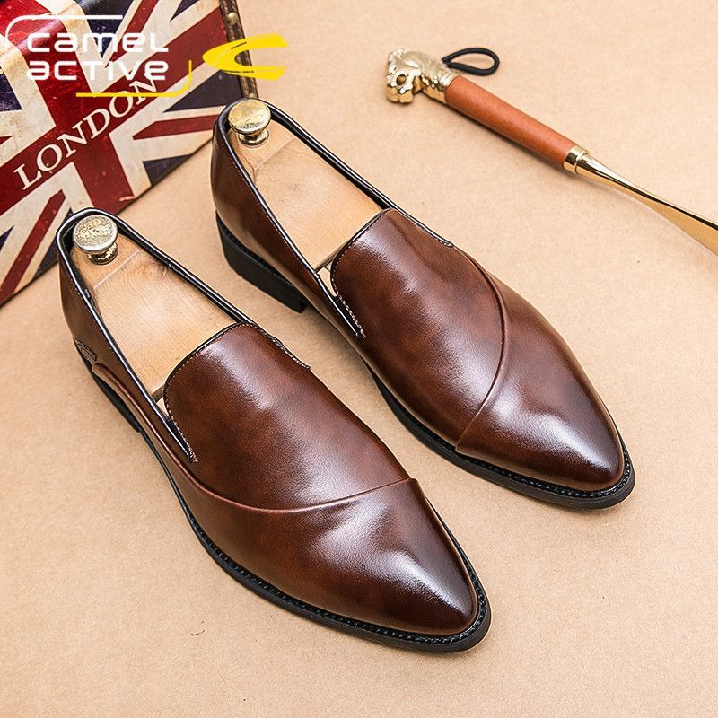 ラクダの躍動感のある本革男性靴紳士ビジネスカジュアル革靴男性サイズ36通気性のある大きな靴4849