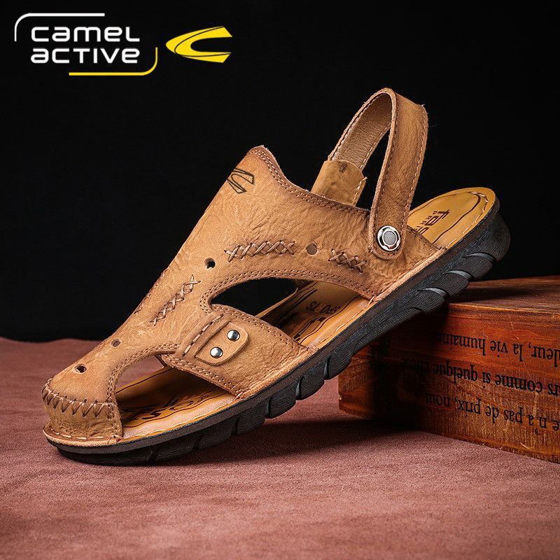 ラクダのダイナミックな本革サンダル男性の屋外でビーチシューズを履いている男性の滑り止めソフト底カジュアル中年のお父さんのサンダル