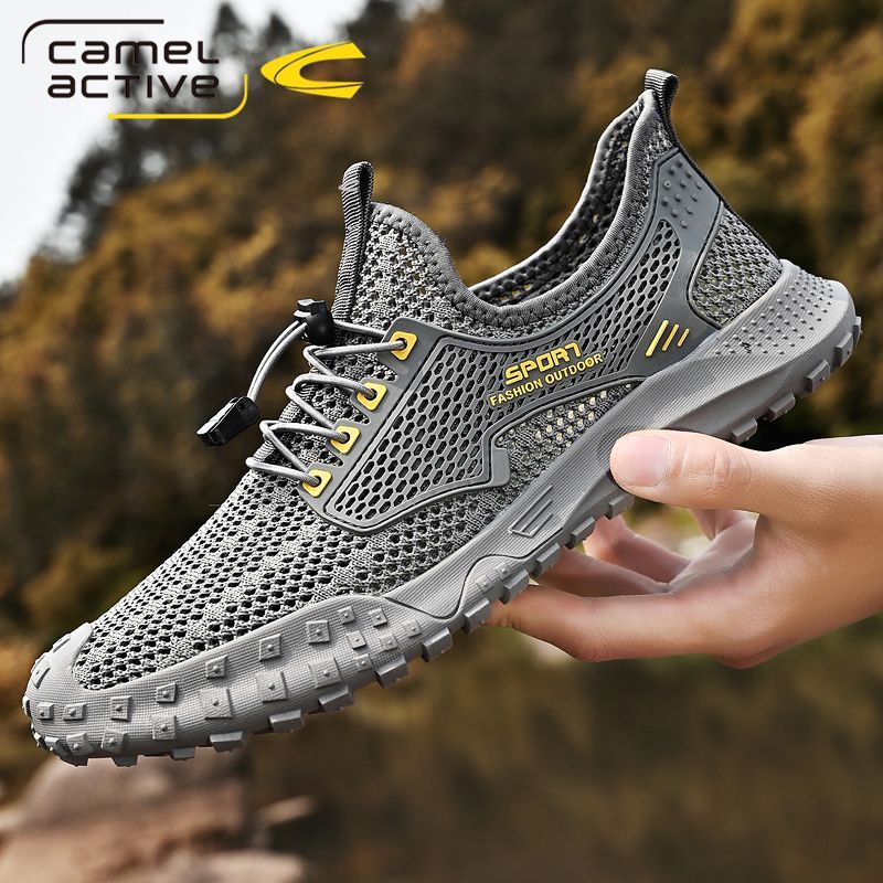 ラクダの動感の男性の通気ネットの靴の夏の透かし彫りの軽い運動靴の男性の屋外の滑り止めの柔らかい底は渓の靴の男性を追跡します。