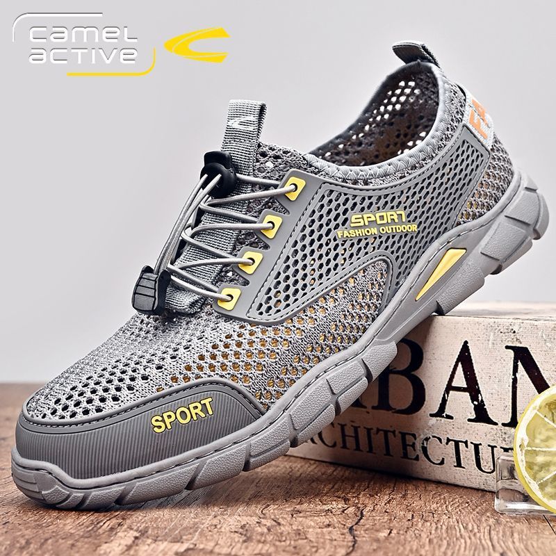 ラクダのダイナミックなネット靴の男性2023夏の透かし彫りの通気性の屋外の運動靴の男性の軽くて柔らかい底の穴の靴の男性