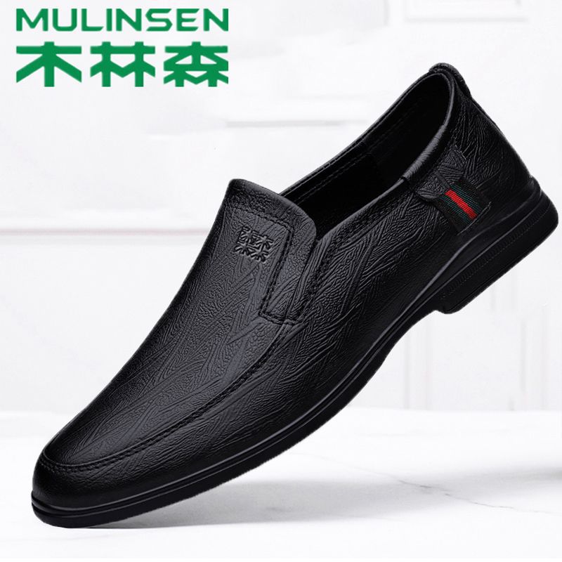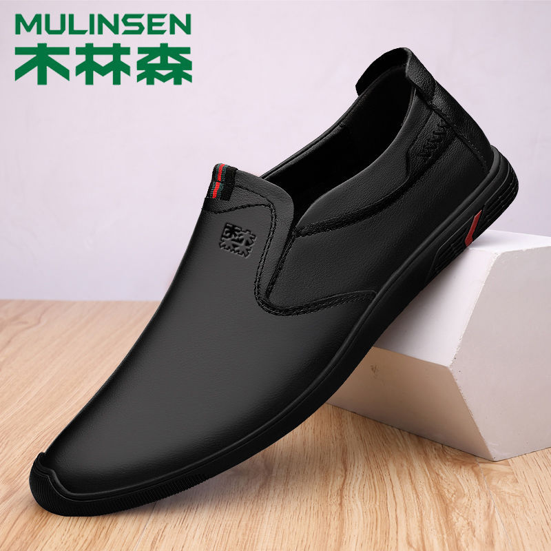 木林森革靴男ソフト底牛革靴男超ソフトビジネス滑り止め靴平底ビジネスカジュアル男靴