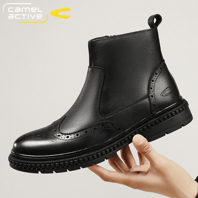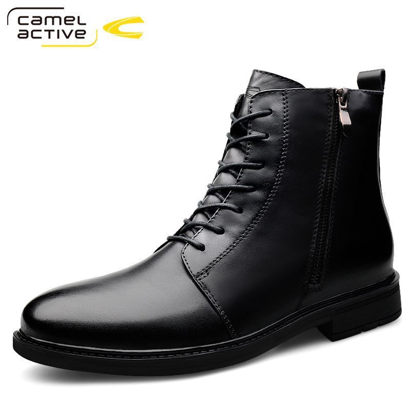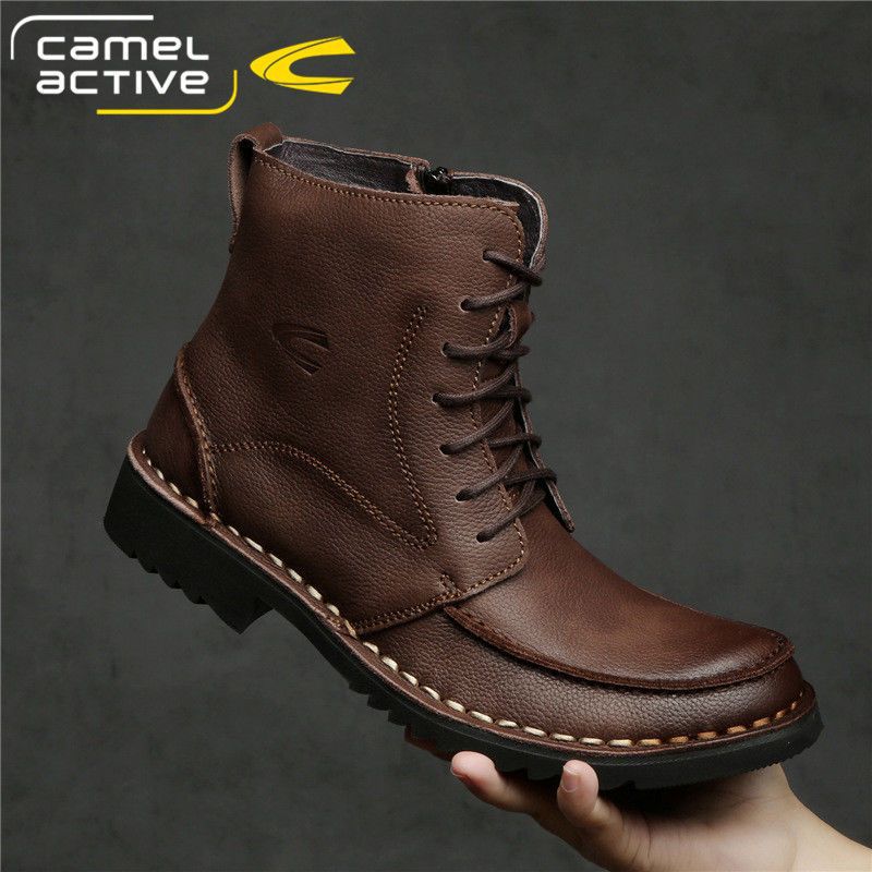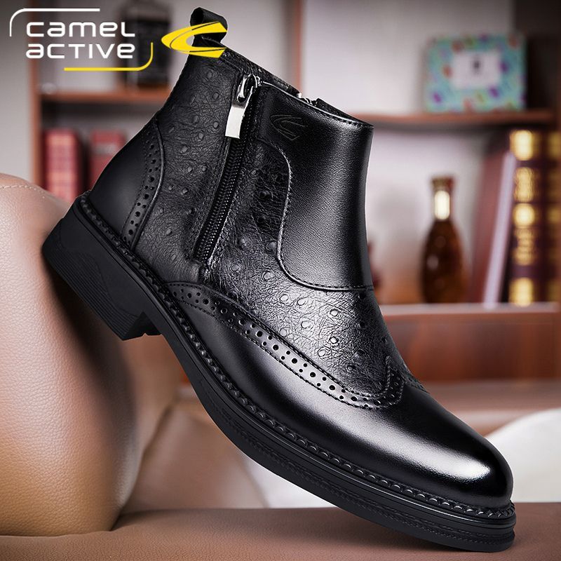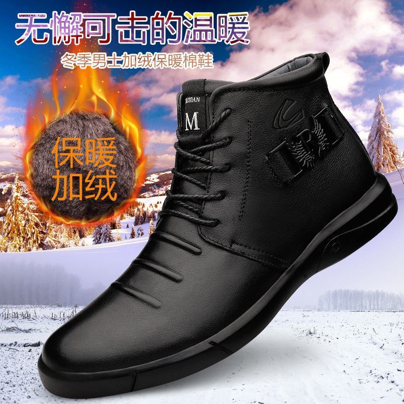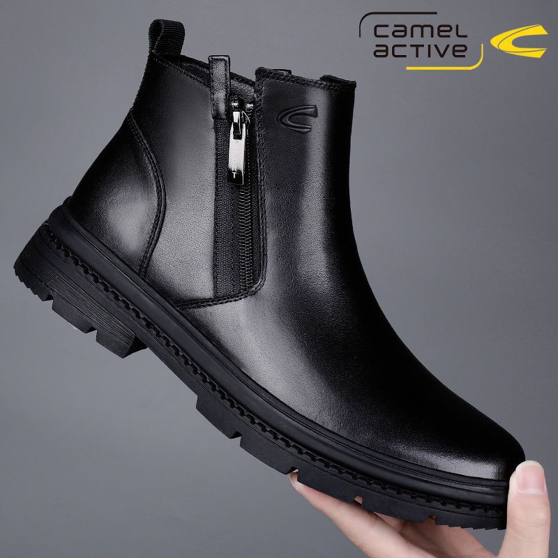 ラクダのダイナミックな高級マーティンブーツ男性側ファスナー冬高組ベルベットブーツ男性中組真皮雪地ブーツ男性