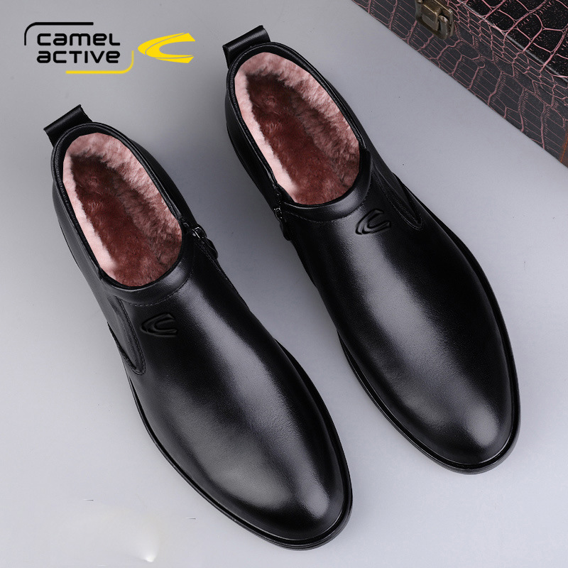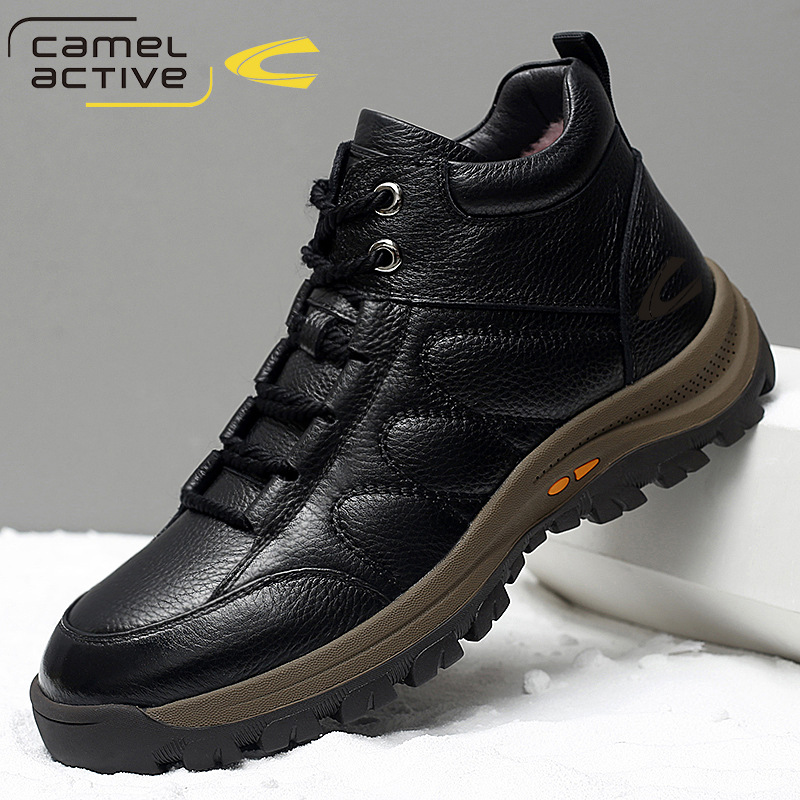 ドイツ製キャメルブランドのメンズウィンターシューズ、ウールと裏起毛で厚く暖かい、防水性のあるハイカットレザーシューズ、スノーブーツ