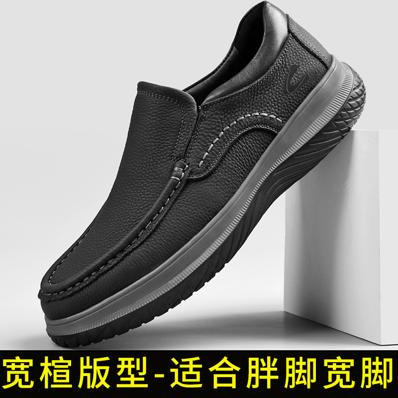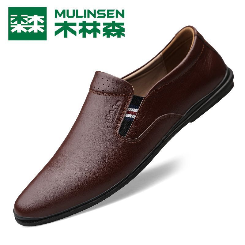 木林森男靴2022新型男性靴ストラップビジネスカジュアル靴中年お父さん靴ソフト底