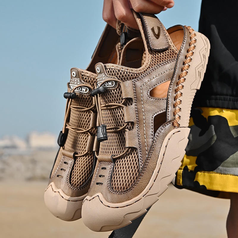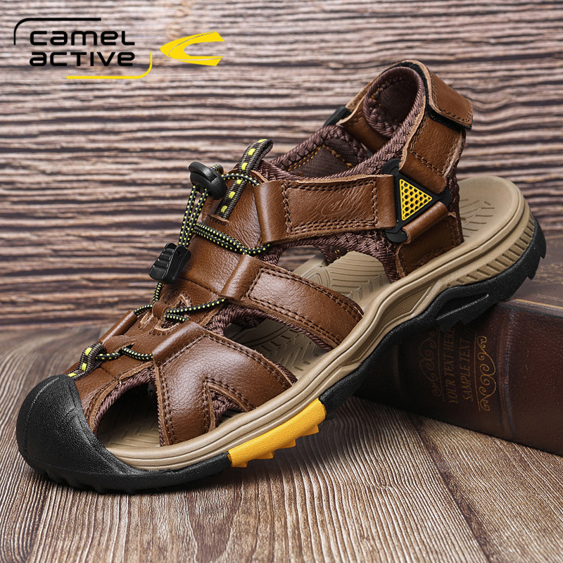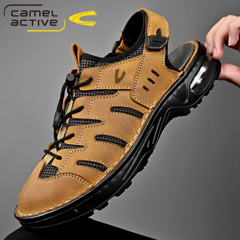 ドイツのラクダのダイナミックなアウトドアサンダル男性の新しい夏の通気性男性の頭の柔らかい底のネットのビーチの靴