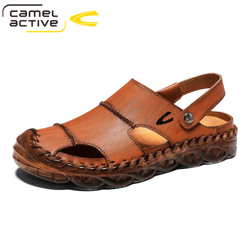 ドイツのラクダのダイナミックな包頭サンダル男性夏男性ビーチ靴滑り止め牛革洞靴サンダル