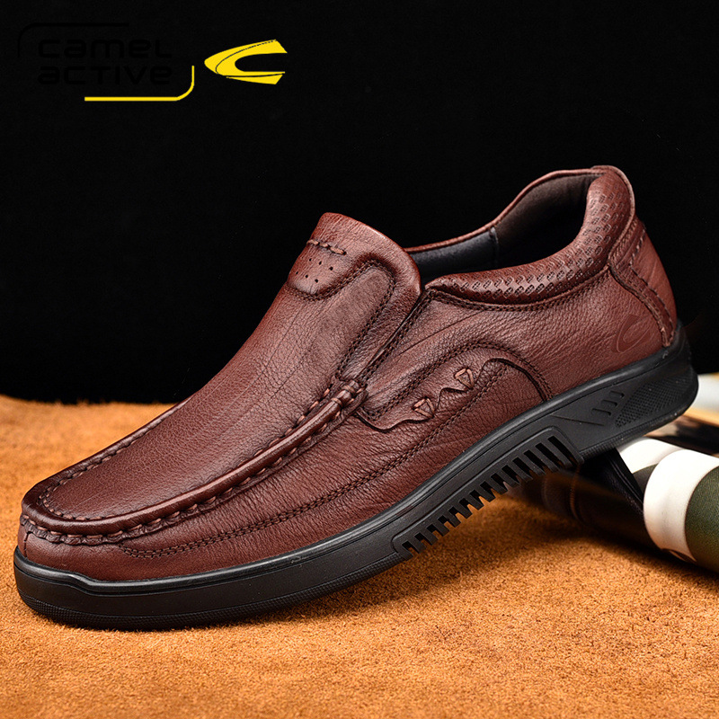 ドイツのラクダのダイナミックな男性靴秋冬の新型の柔らかい底のカジュアルな革靴の男性は1足でお父さんの靴を漕いでいます。