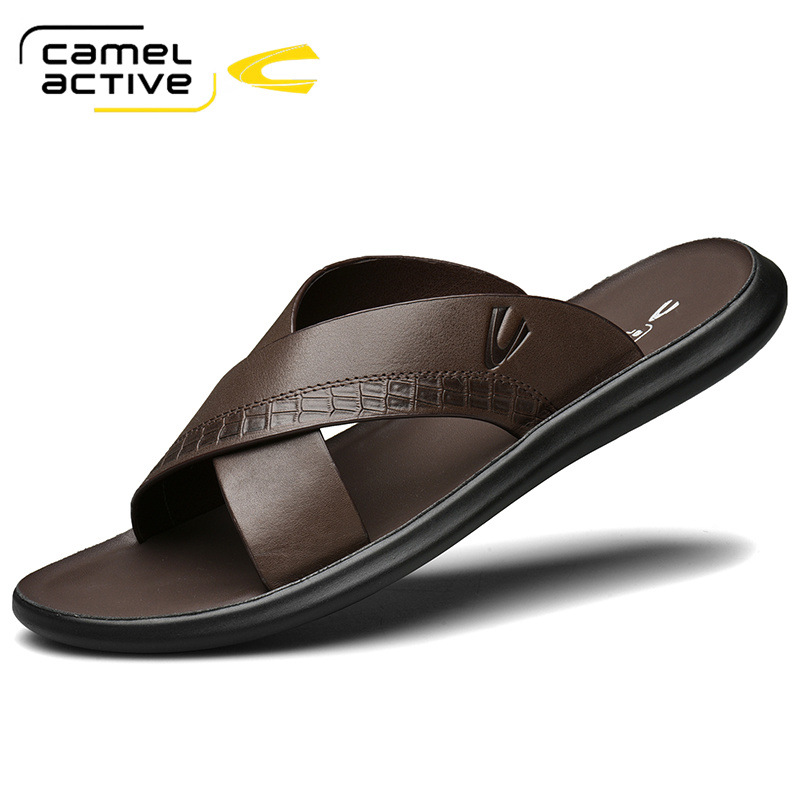 ドイツのラクダの夏の皮のサンダルの男性の2022新型の両用の潮流のサンダルの外でカジュアルな滑り止めのビーチの靴を着ます。