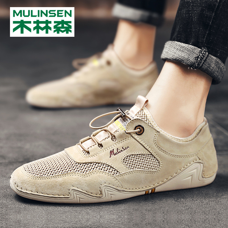 木林森男靴夏通気ネット靴怠け者運転靴ネット面手作り本革ファッション靴男性カジュアル靴