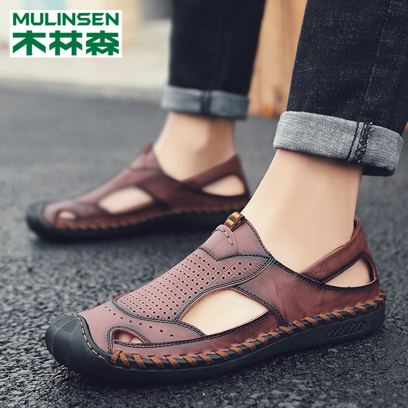 木林森サンダル男性潮2020夏の新型アウトドア包頭通気涼しい男性スポーツレジャービーチ靴