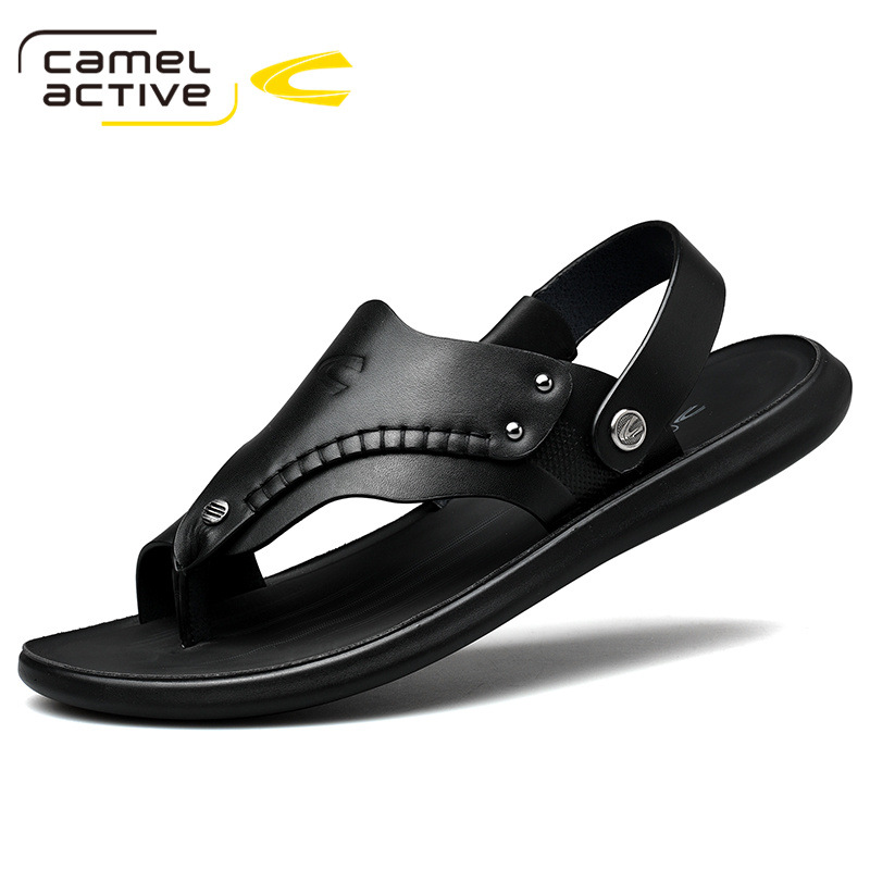 ドイツのラクダのダイナミックな夏のサンダルの男性の滑り止めのつま先の男性のビーチの靴の外で革のサンダルのサンダルの男性の潮を履いています。