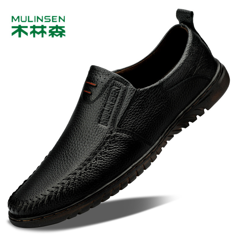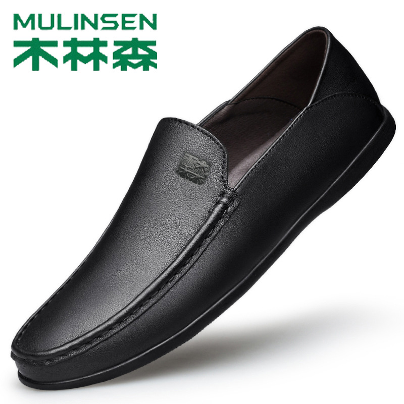 木林森レジャー靴男牛皮2021新型ソフト底軟面カバー足怠け者運転靴四季シングル靴