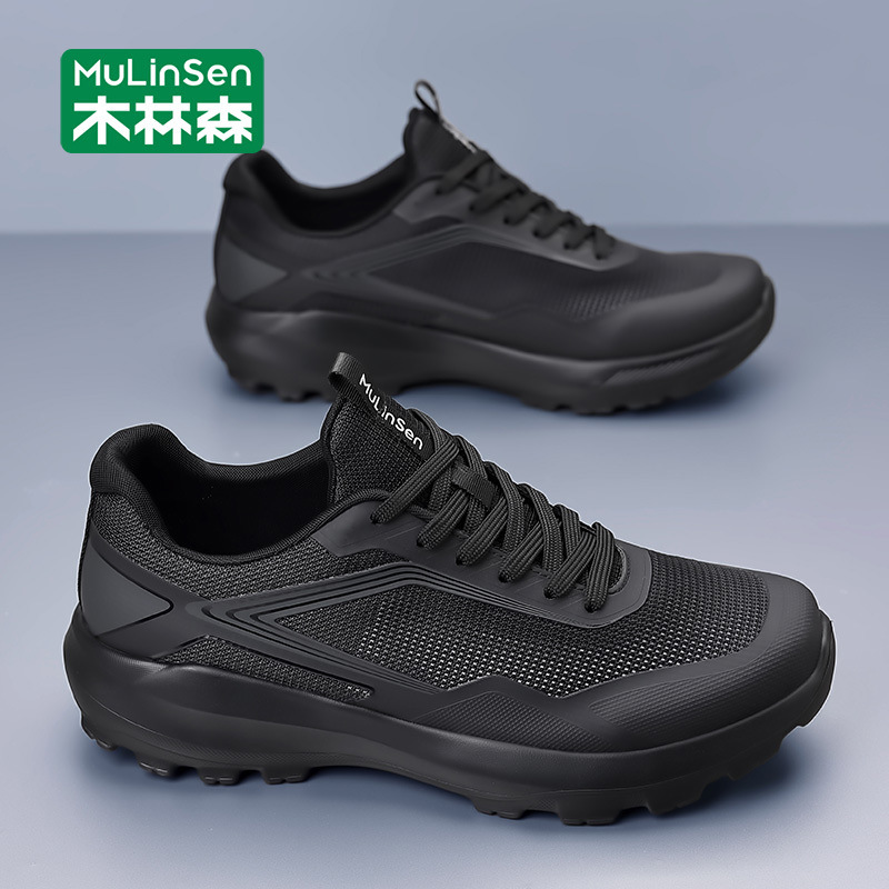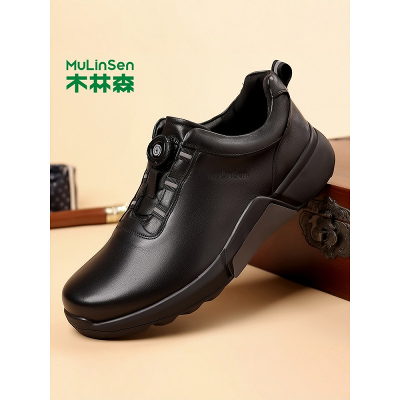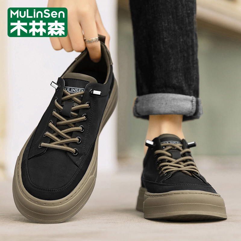 Mulinsen スポーツシューズ男性用 2025 新しい滑り止め耐摩耗性厚底カジュアルレザーシューズ本革多用途作業服お父さん靴
