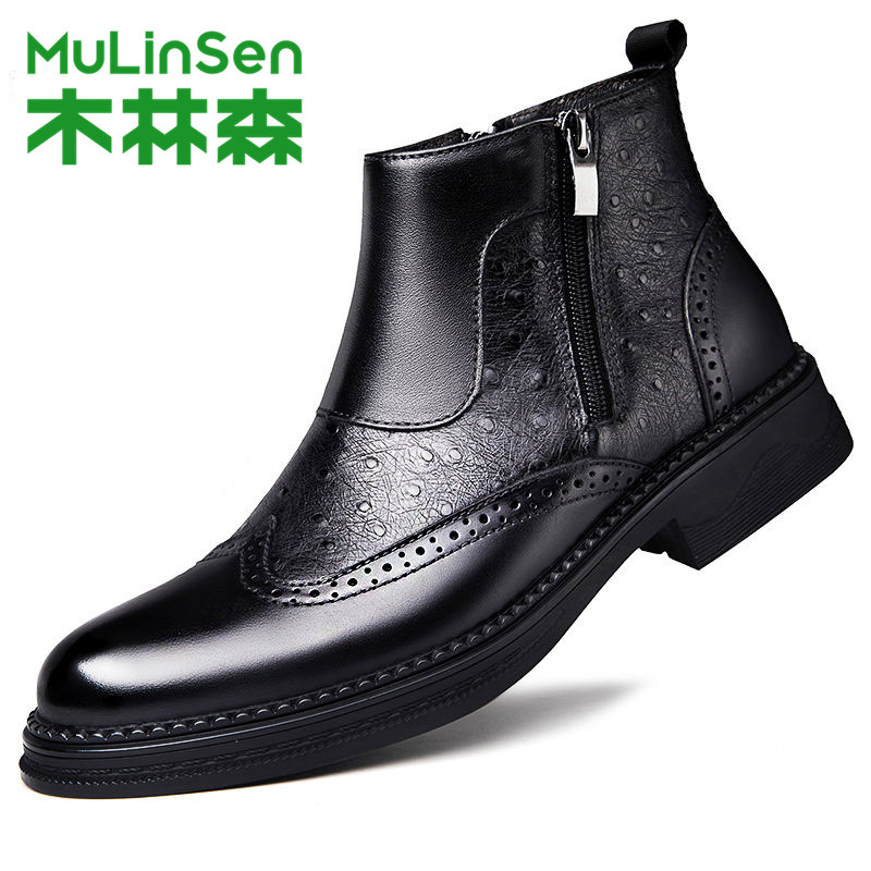 Mulinsen マーティンブーツメンズ本革ノースイースタンコットンシューズ冬プラスベルベットウールワークブーツハイトップスノーブーツ