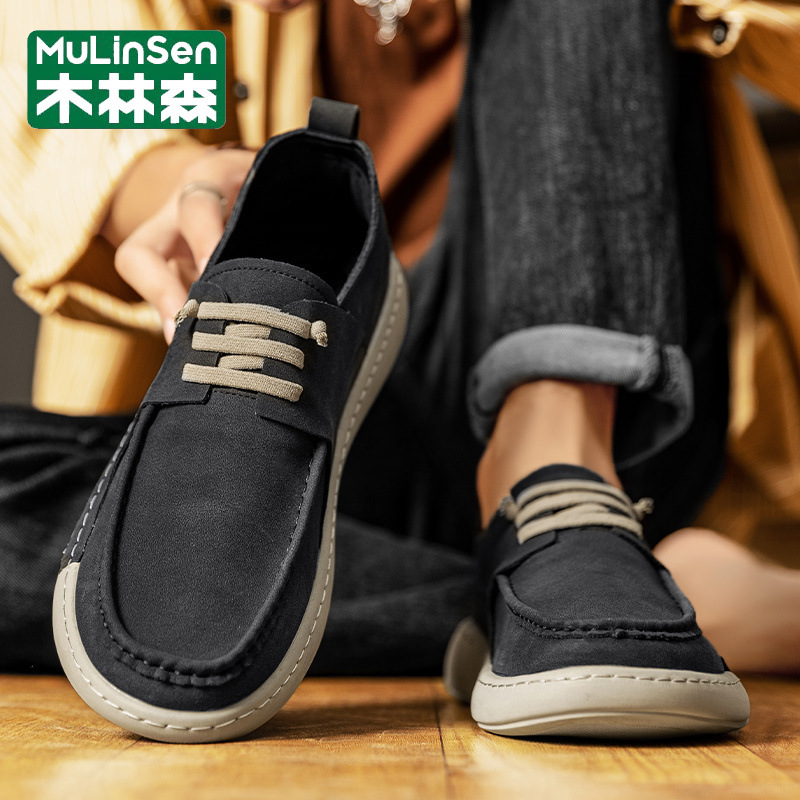 Mulinsen 紳士靴 2025 春と秋の新作本革レトロスリッポンカジュアルシューズメンズソフトソールビーニーレザーシューズ Y