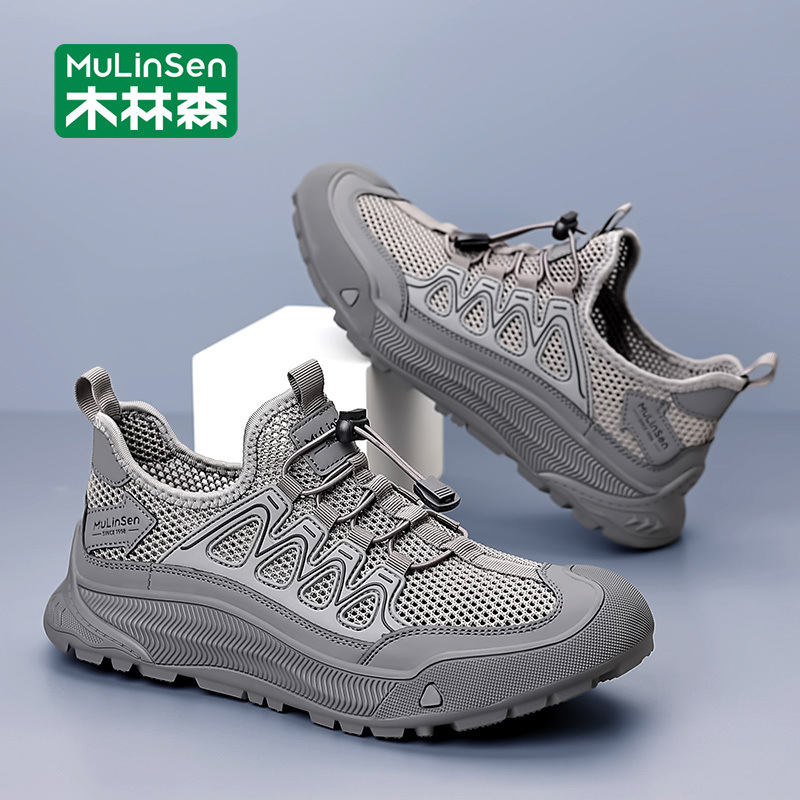 Mulinsen 夏通気性メッシュ紳士靴中空薄型軽量ハイキングシューズメンズカジュアルスポーツシングルメッシュシューズ