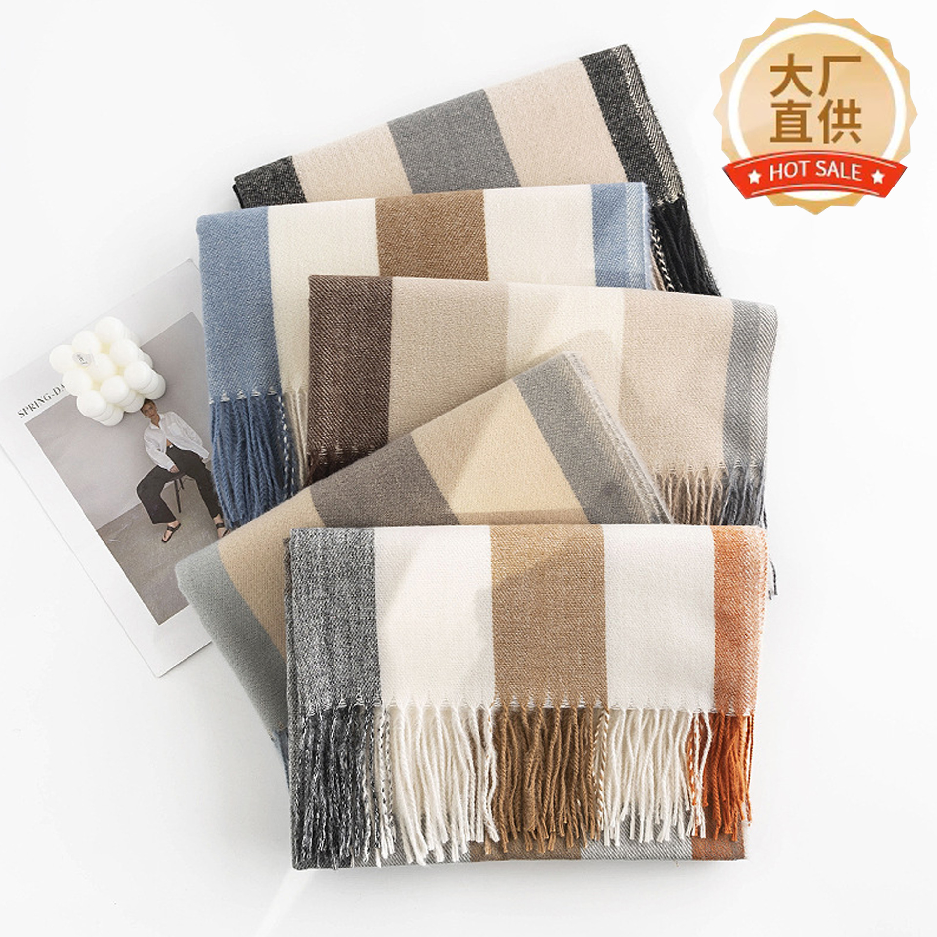 雰囲気 2025 新しい韓国スタイル多用途ストライプチェック柄スカーフ女性の冬暖かいカップル秋と冬のスカーフショール