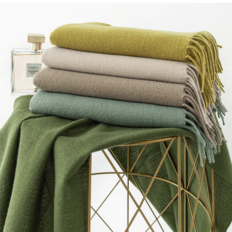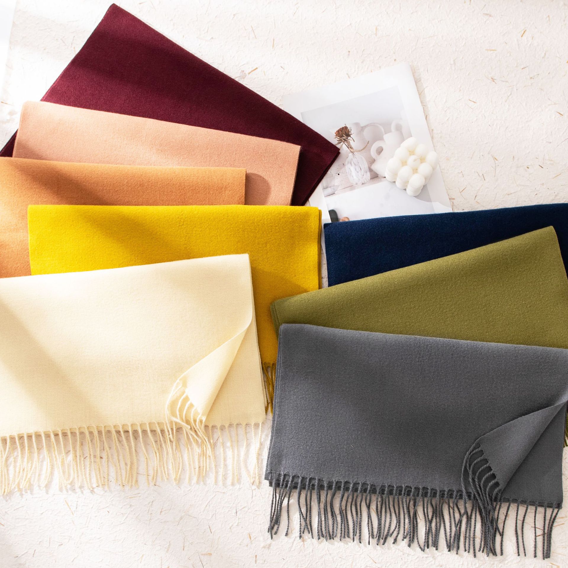 ウールタッセル付き模造カシミアスカーフ、男性と女性用、多用途の無地のファッショナブルな通勤用暖かいスカーフ