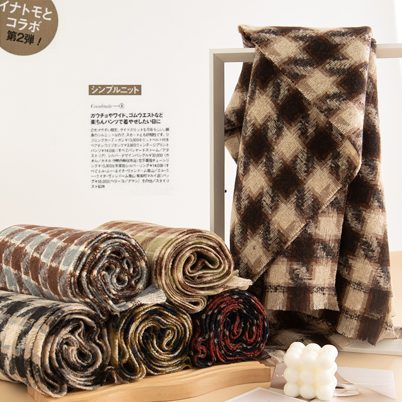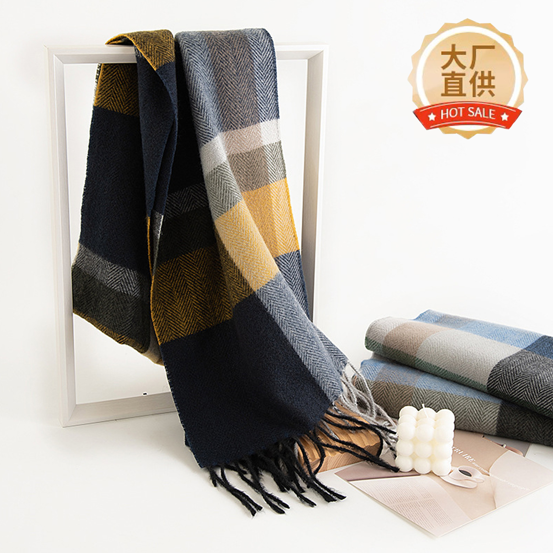 外国貿易の爆発的な冬の英倫風の格子はカシミヤのマフラーの男女の高級感をまねて、厚い保温のマントを合わせます。