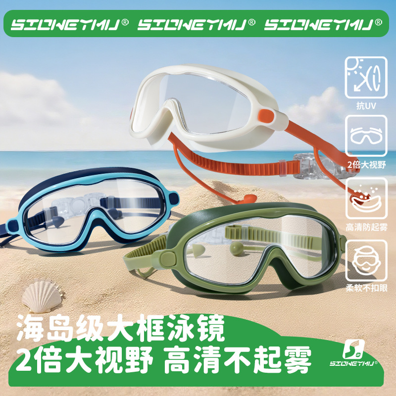 斯衛姆児童水泳鏡hd防水防霧大枠連体耳栓水泳鏡メーカー卸売りの売れ筋金