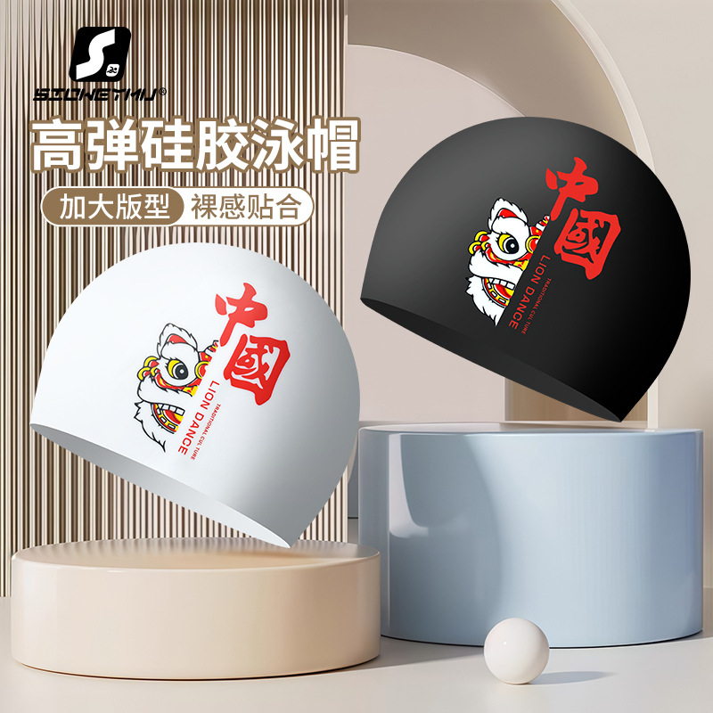 特大スイミングキャップ、防水、伸縮性なし、特大快適シリコン、成人男性と女性、大きな頭囲、長い髪、国旗スイミングキャップ