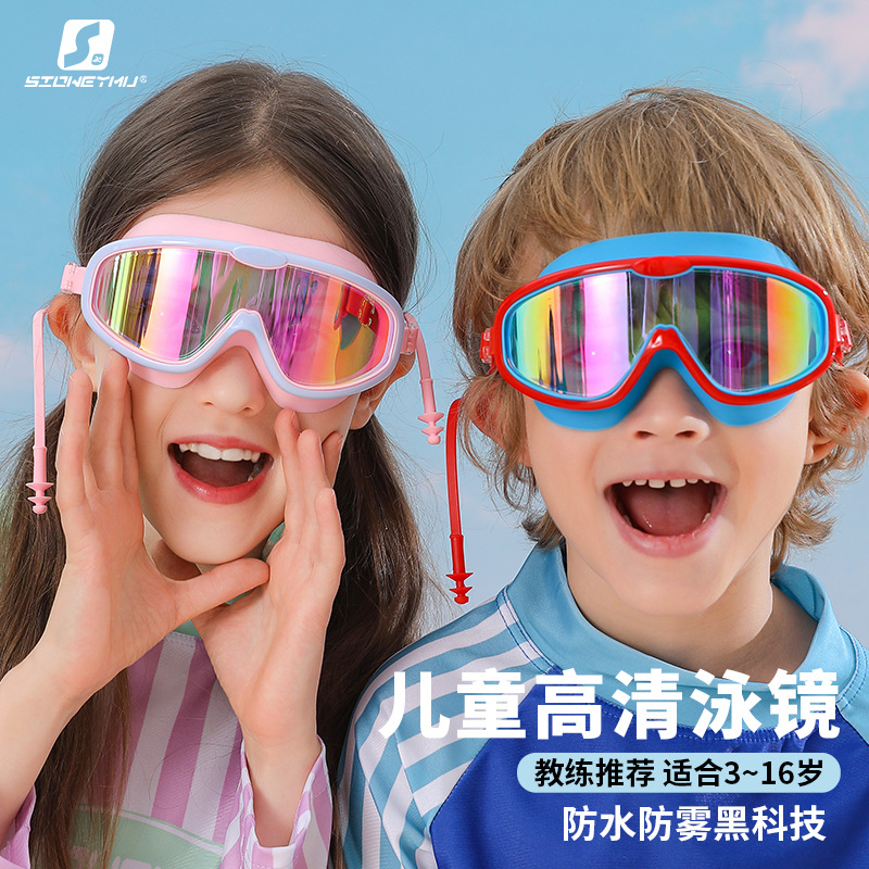 新型大型フレーム水泳ゴーグル 防水防曇高画質スイミングゴーグル一体型耳栓シリコン製子供用水泳ゴーグル卸売