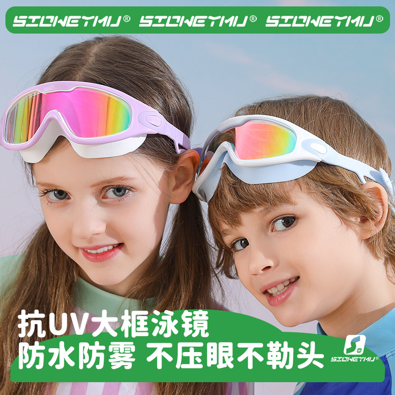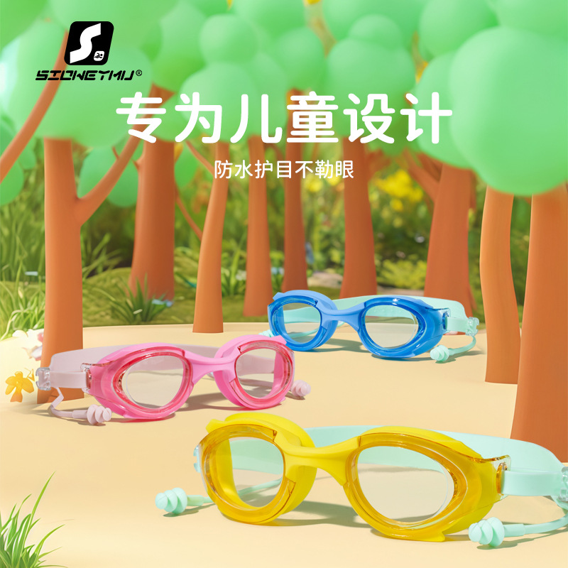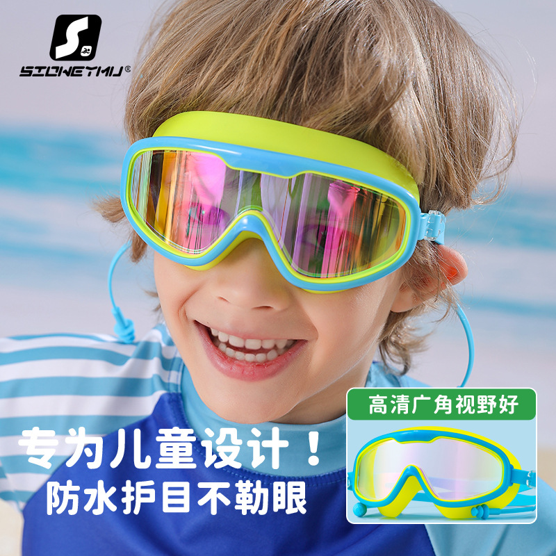 新型大枠水泳鏡防水防霧ハイビジョン水泳メガネ連体耳栓シリカゲル子供電気めっき水泳鏡