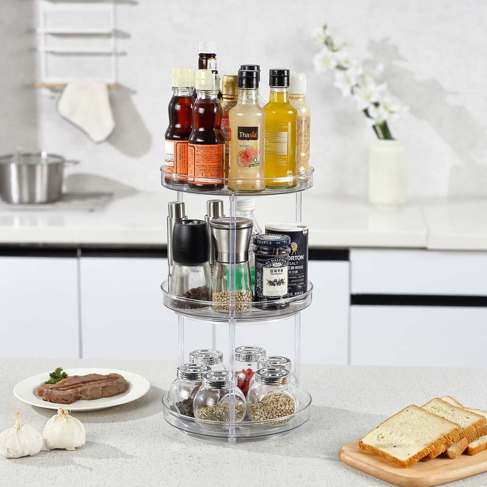 23透明収納回転調味料ラック物置棚キッチンテーブル調味料瓶収納神器回転物置棚
