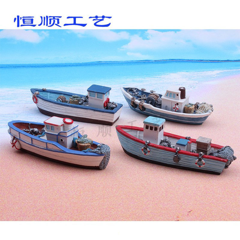 地中海風情魚船樹脂工芸品置物砂盤砂具部品樹脂船9.5cm