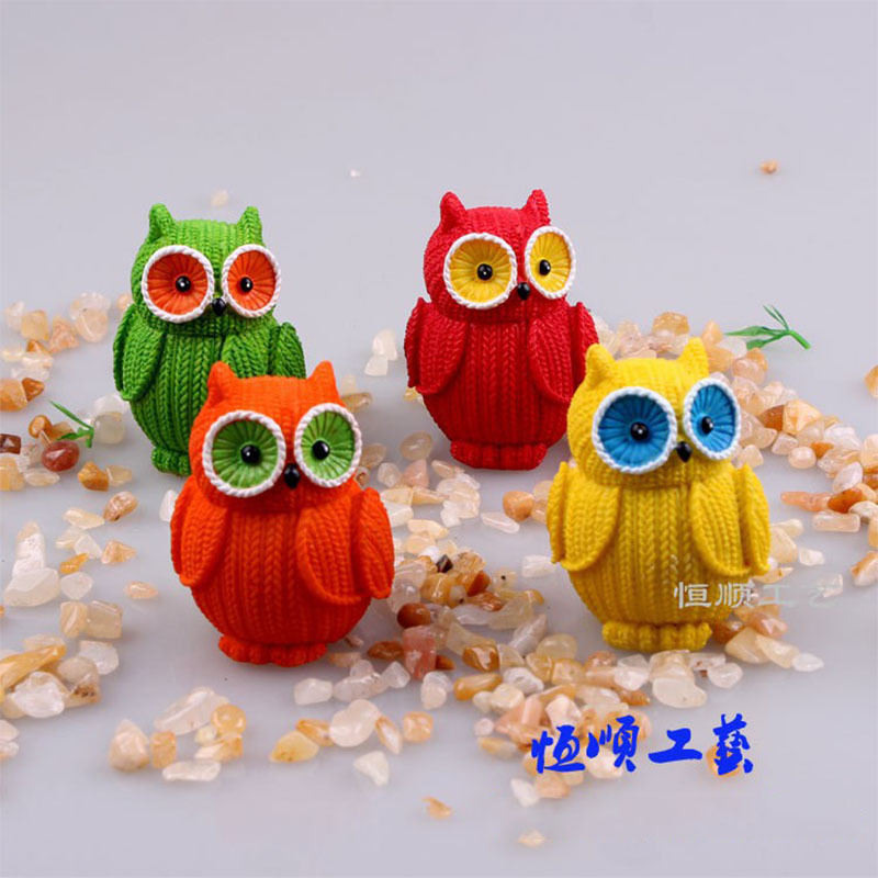 Kakka風カラーミニ漫画フクロウ微景観プラグイン樹脂工芸品置物毛糸フクロウ