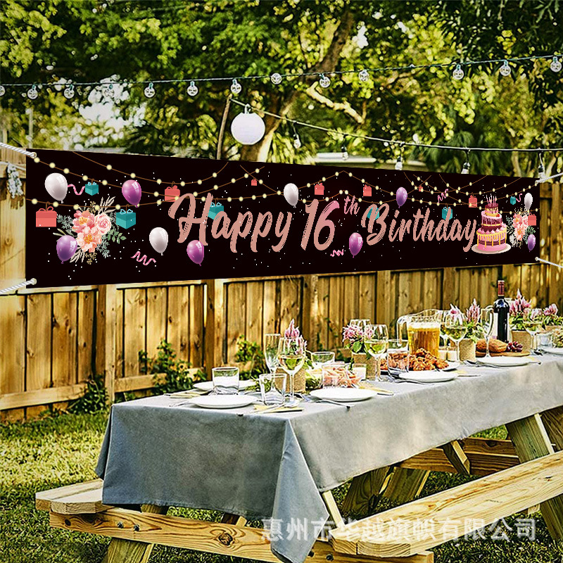 16歳の誕生日おめでとう黒バナーパーティーイベントの雰囲気装飾用品は、新しいバナーをデザインすることができます
