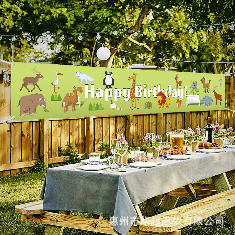 漫画動物誕生日バナーパーティーシーン装飾バナー背景布アマゾンかわいいパターンデザイン可能