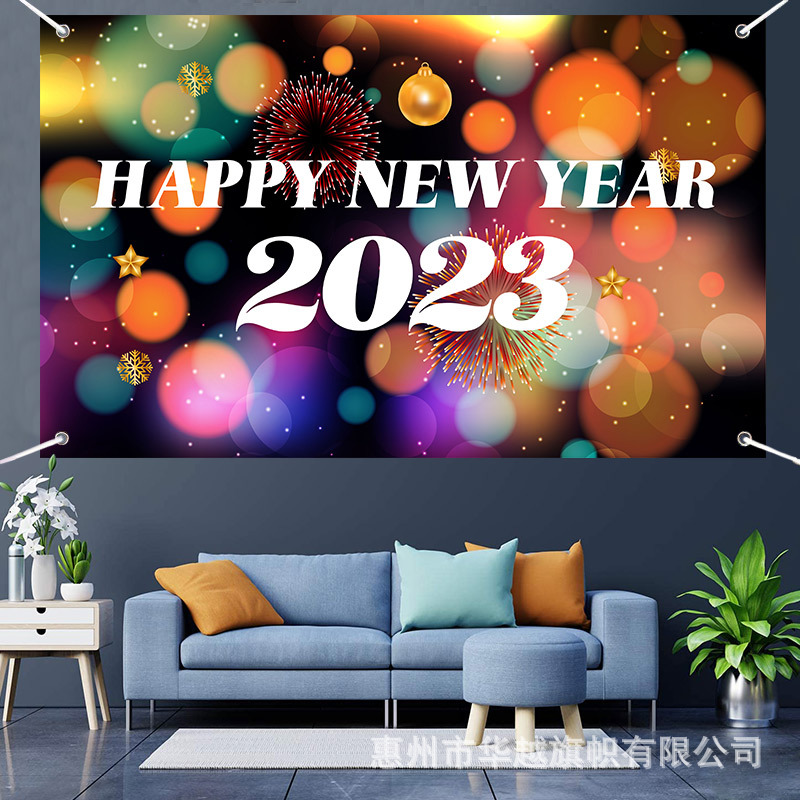 新品クリスマス新年あけましておめでとうございますバナー2023年シーン雰囲気色とりどり花火ランプ火飾りデザイン可能柄