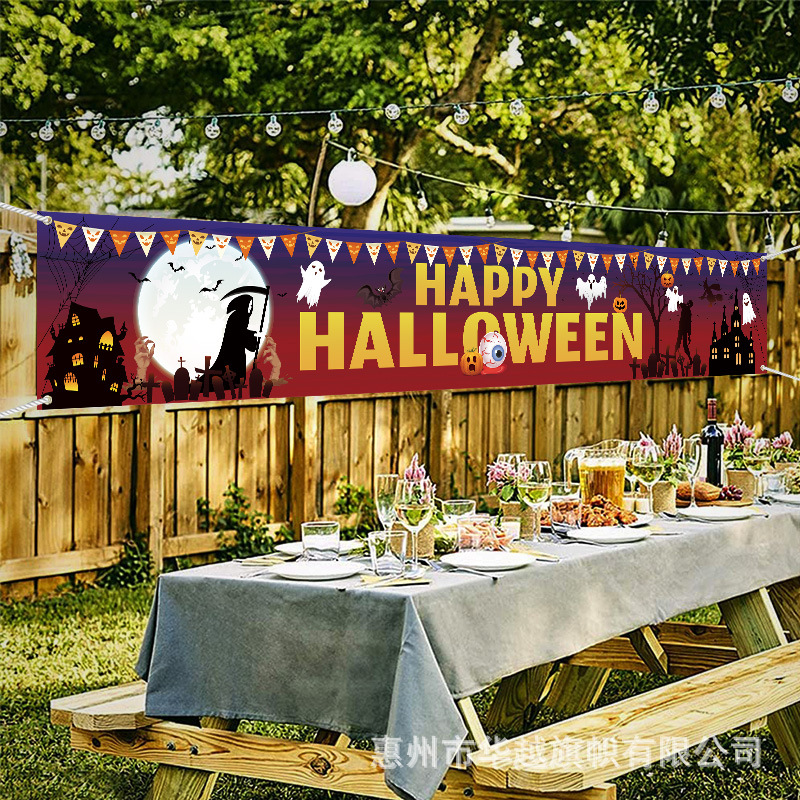 ハロウィーン横断幕対外貿易屋外雰囲気装飾背景布祝日用品猫頭蓋は新しいデザインをデザインすることができる
