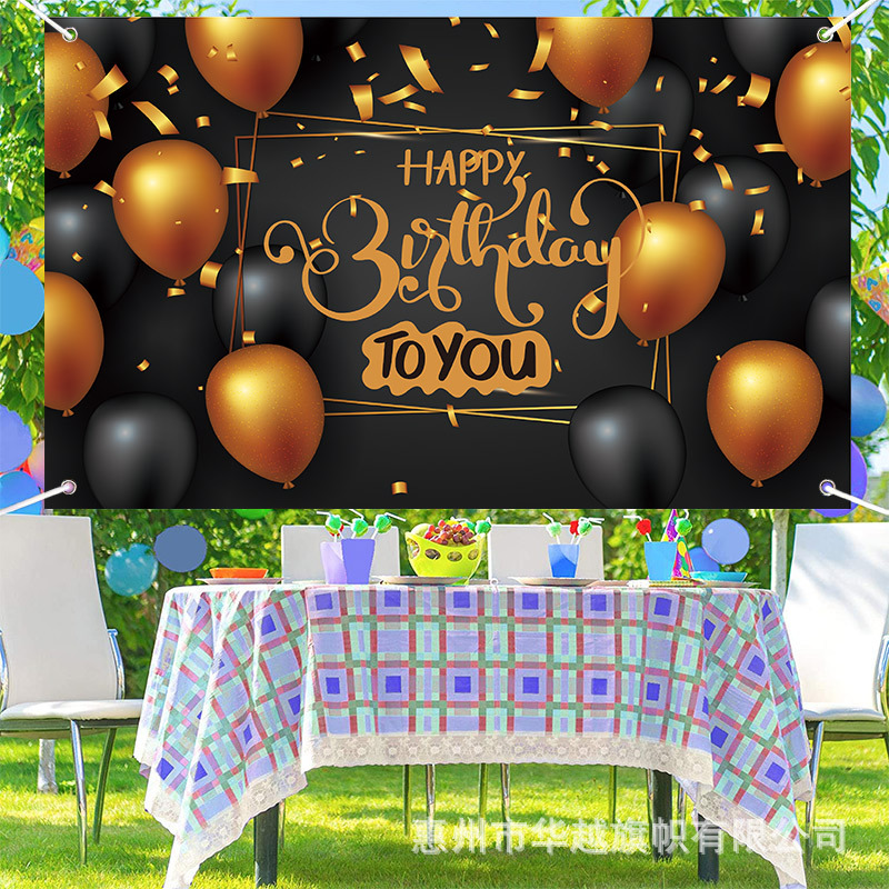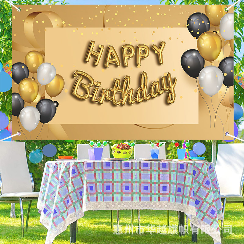 誕生日おめでとうバナー金色背景風船装飾パーティーパーティーイベントシーン配置サポート来図デザイン