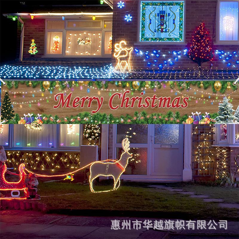 クロスボーダークリスマスバナー旗クリスマステーマ屋外庭園パーティー背景布祝日装飾用品