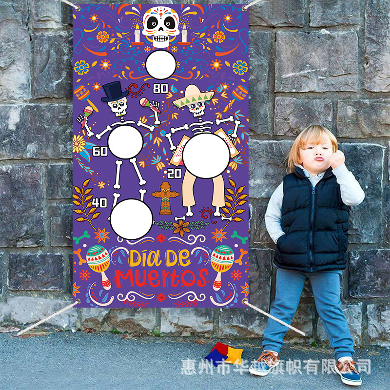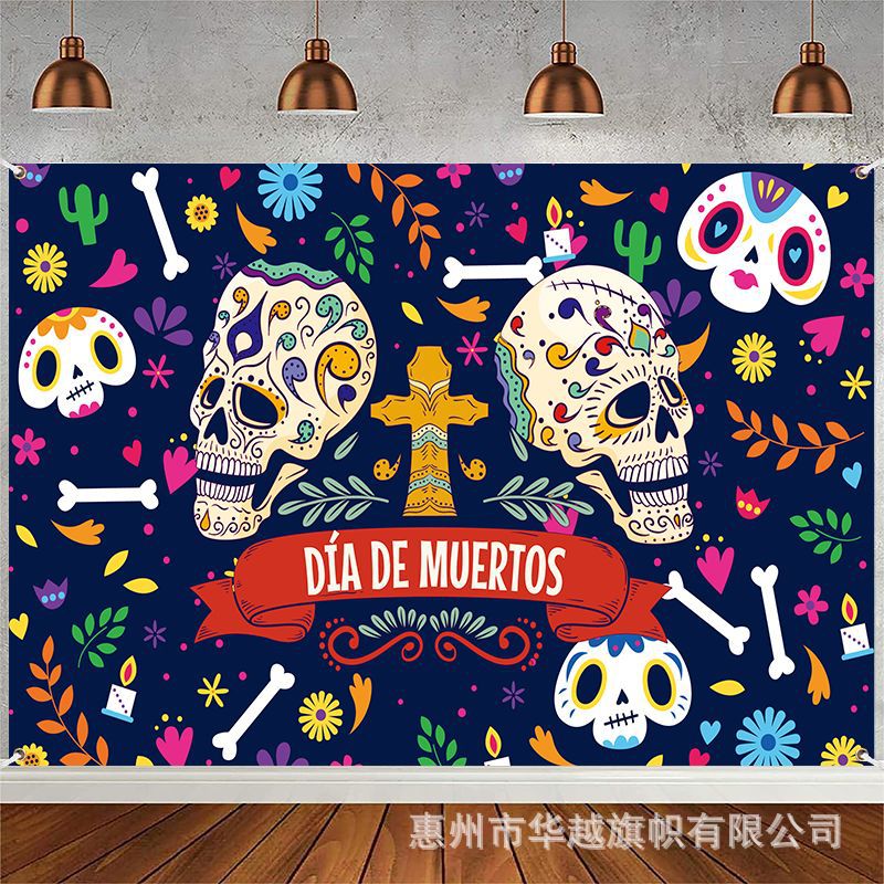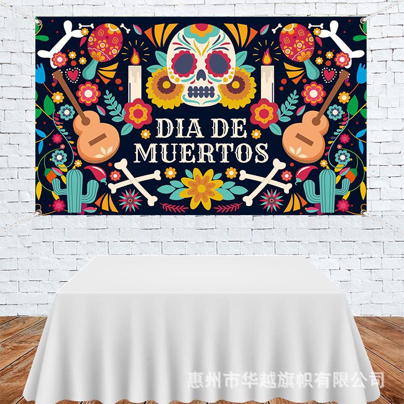 クロスボーダーメキシコ亡霊祭背景布ホラーテーマパーティースカルバナー装飾旗