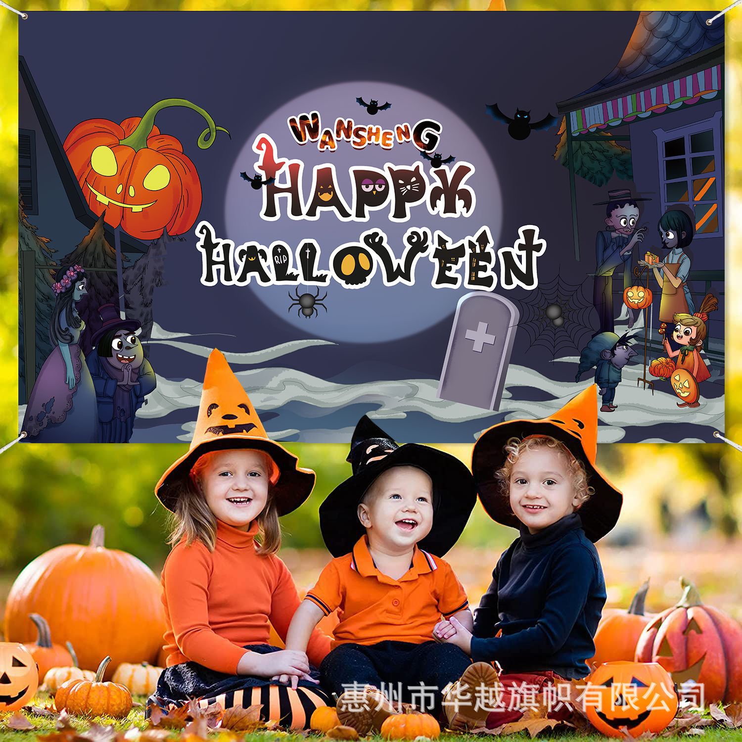 国境を越えた新型ハロウィーン背景布横断幕鬼節テーマ庭園パーティー屋外シーン写真装飾品
