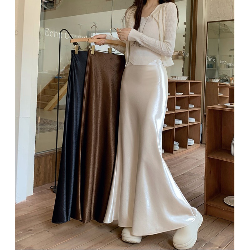 フランスの高級感の気質の酢酸の絹織物の尾のスカートの女性の春の高い腰はやせて見えるヒップのスカートの半身のスカートの長いスカートを包みます。