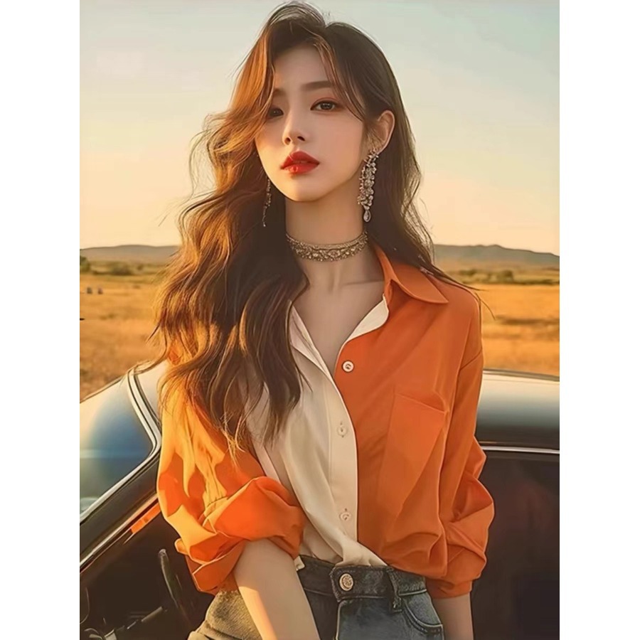 ドーパミンの色合わせの長袖のシャツの女性2025の新型の軽くて豪華な高級感の初春の雰囲気感は上着を着ます。
